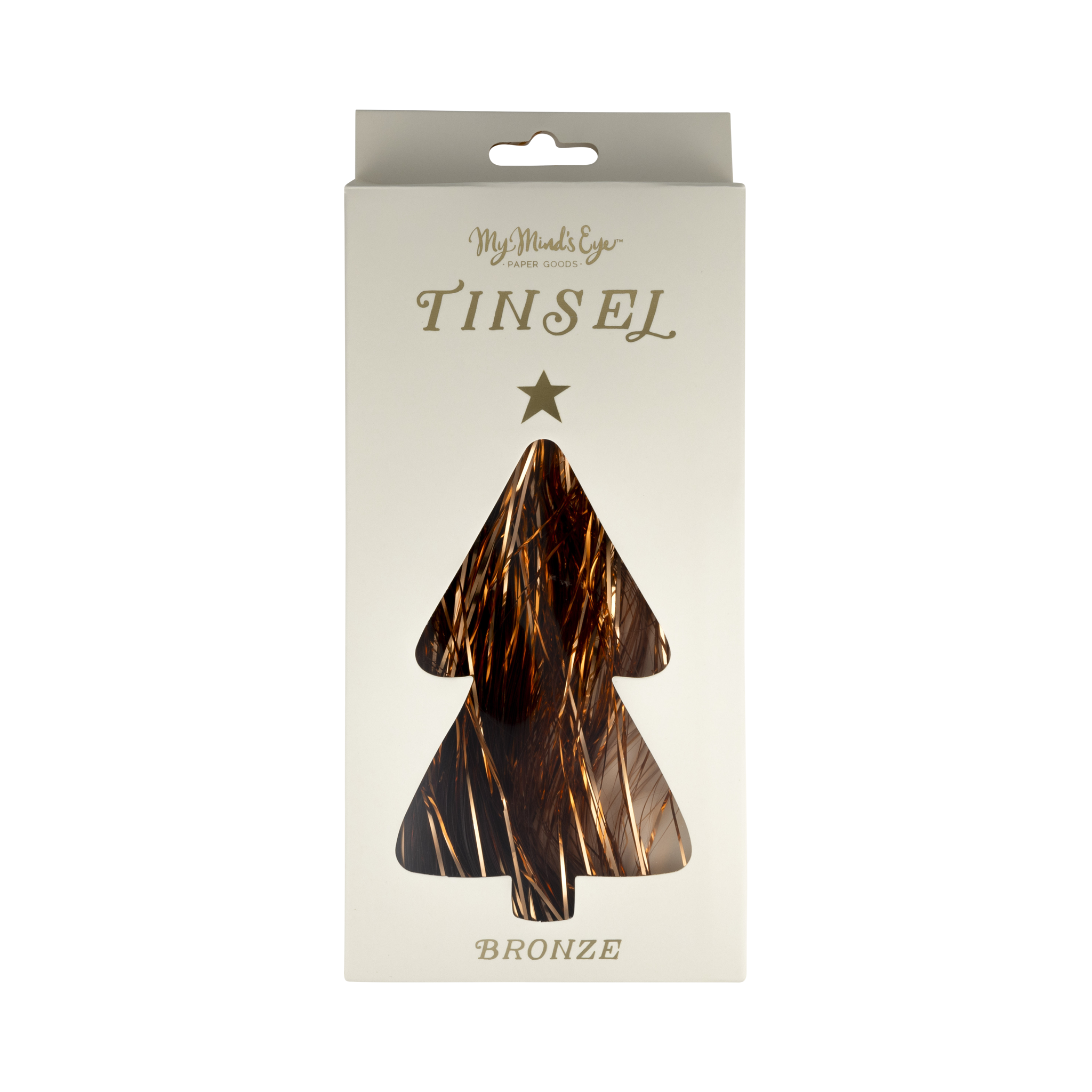 Add some sparkle to your holiday decor with our Bronze Tinsel. This playful, festive tinsel is sure to be a standout on any Christmas tree. Its bronze color adds a touch of elegance while still maintaining a fun, festive vibe. Happy decorating! • Tinsel is 18" long • Package contains 1000 pieces of tinsel