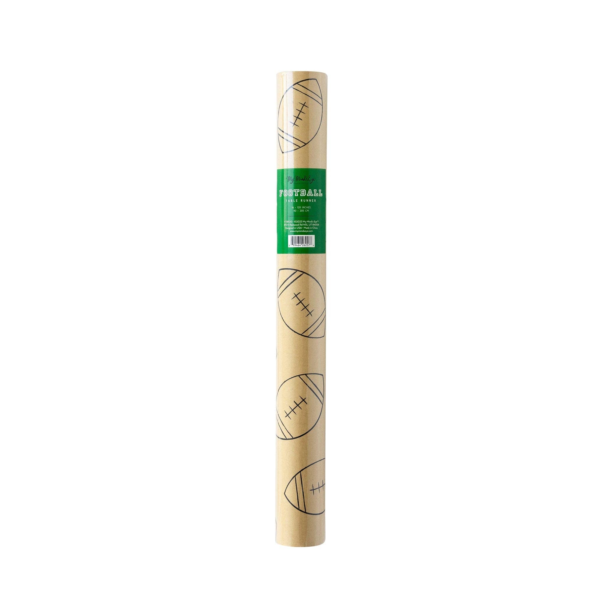 Step up your tailgating game with this football inspired table runner. Featuring a fun football design printed on kraft paper, this table runner is the perfect addition to a tailgate feast or showing team spirit at the booster fundraising table at your school's next football game! • 16 x 120