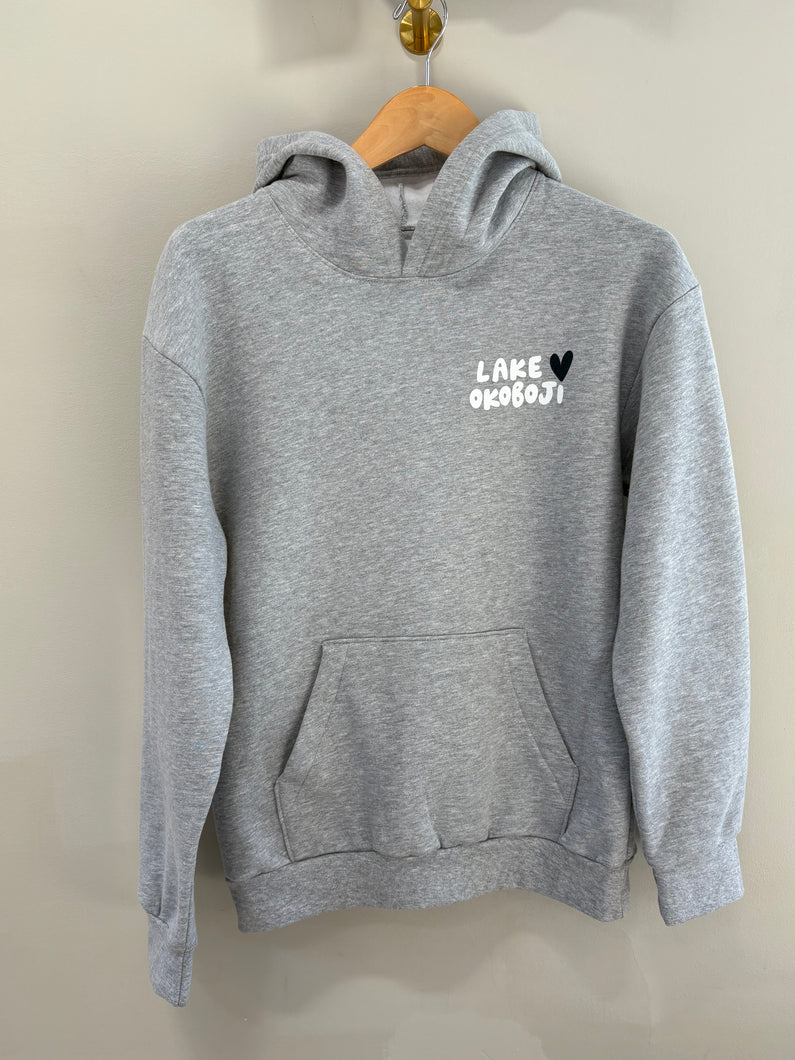 grey hoodie lake okoboji w/ navy heart